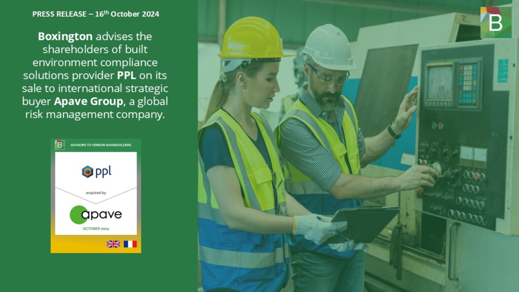 BOXINGTON COMPLETES SALE OF BUILT ENVIRONMENT COMPLIANCE SOLUTIONS PROVIDER PPL