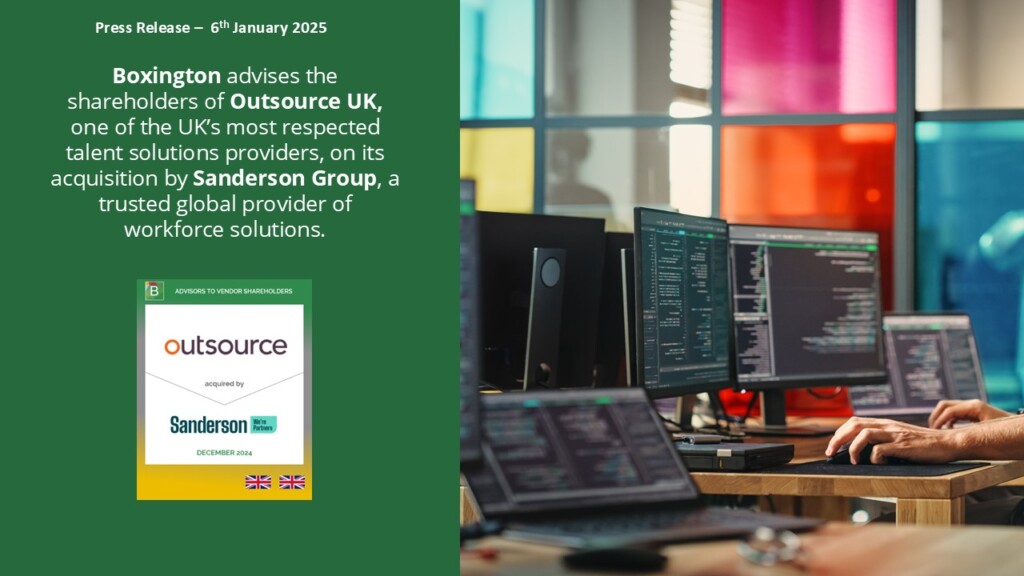 BOXINGTON COMPLETES SALE OF OUTSOURCE UK TO SANDERSON GROUP